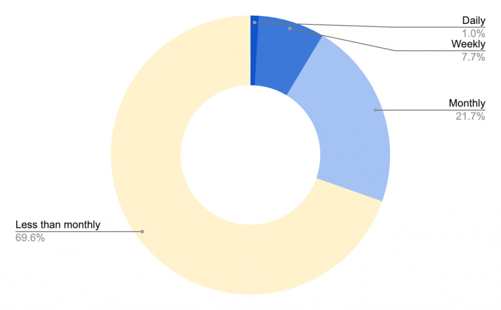 31,296 people who responded to the survey claimed to have swum in the Hampstead Heath bathing ponds and 20,821 said they had swum there within the last three months. The majority of those who responded said they swim less frequently than once a month.
