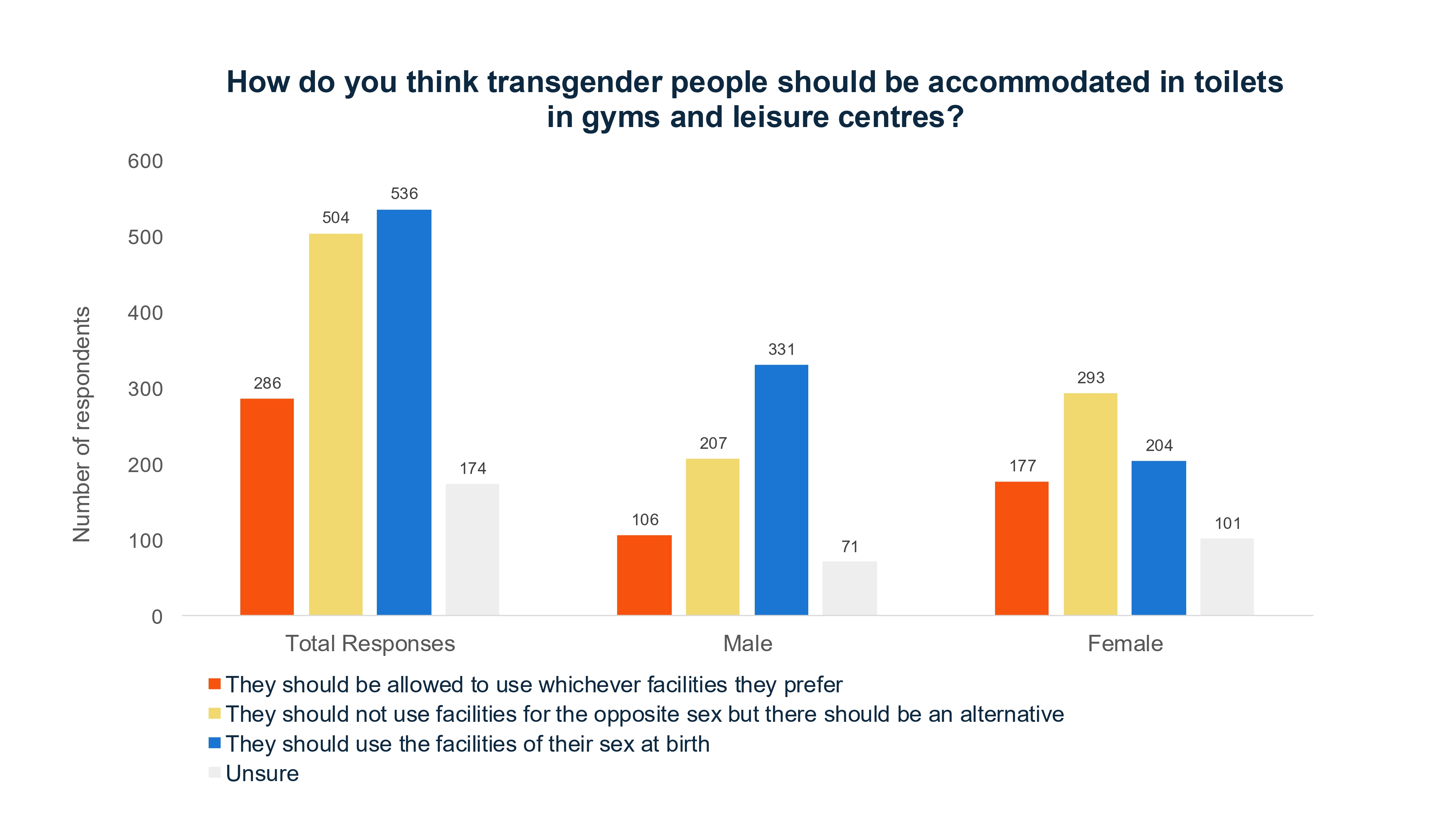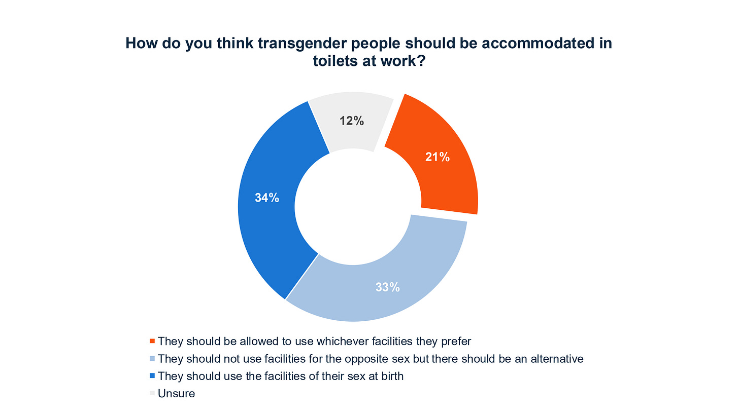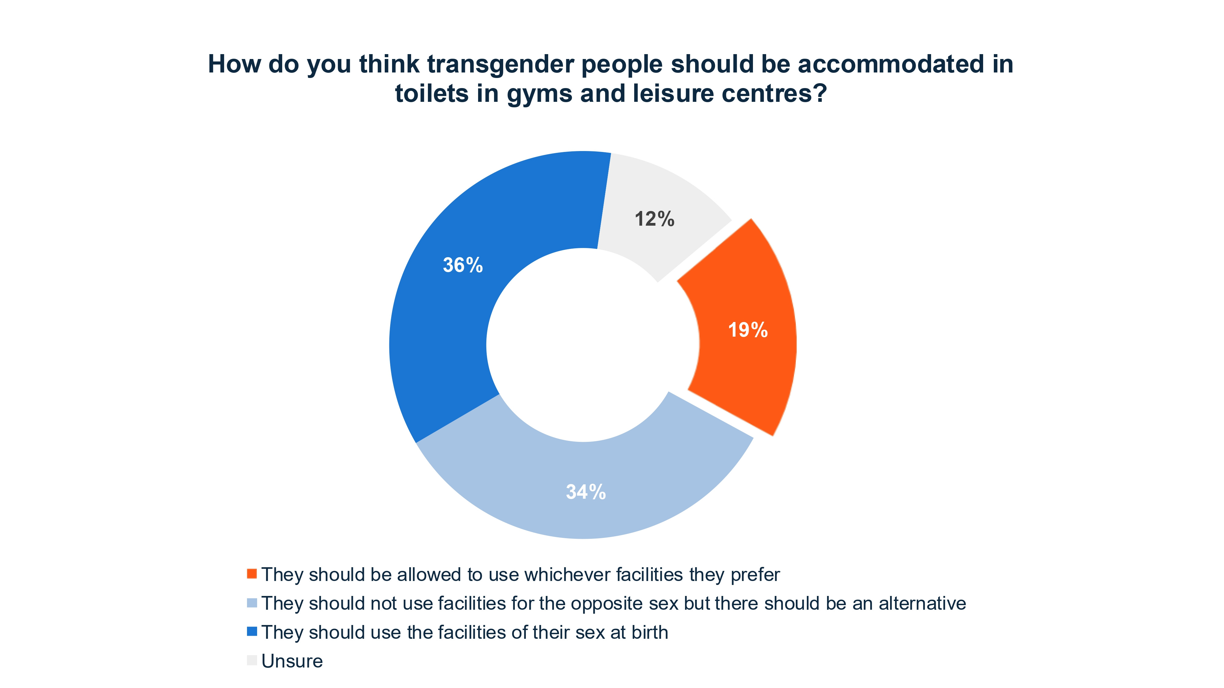 We also asked what provision should be made for people who identify as transgender. Only around one in five say transgender people should be allowed to use whichever facilities they prefer.