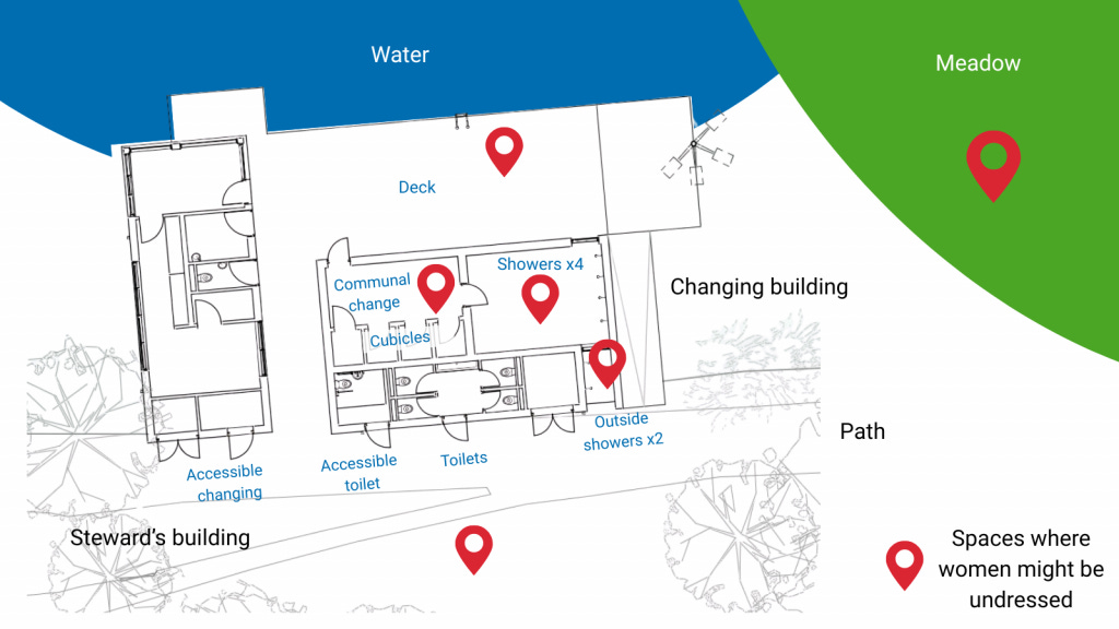 Trans-inclusive spaces but communal toilets and changing rooms single sex: “Trans men would have access to the Highgate Men’s Pond and trans women would have access to the Kenwood Ladies’ Pond and Meadow, but would be required to use the separate accessible toilet, shower and changing room at each facility.”