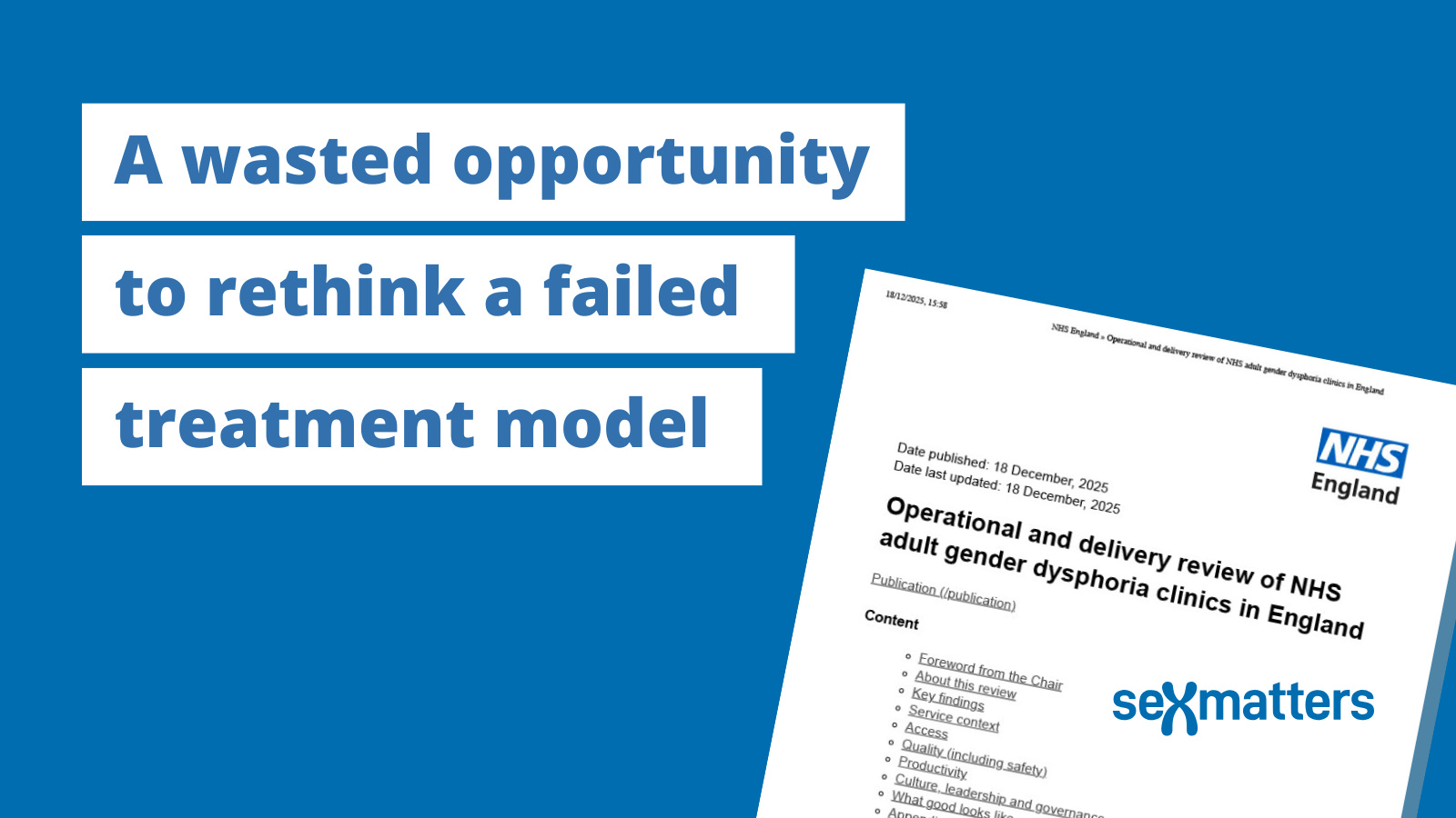 The publication of the Levy Review of adult gender clinics was widely reported as a story about unacceptably long waiting times. Maya’s comments that the review was a wasted opportunity to rethink a failed treatment model were reported by Alison Holt and James Melley for BBC News, Aine Fox for PA Media – in a story that was published widely by media including The Standard – and Michael Searles for The Telegraph.