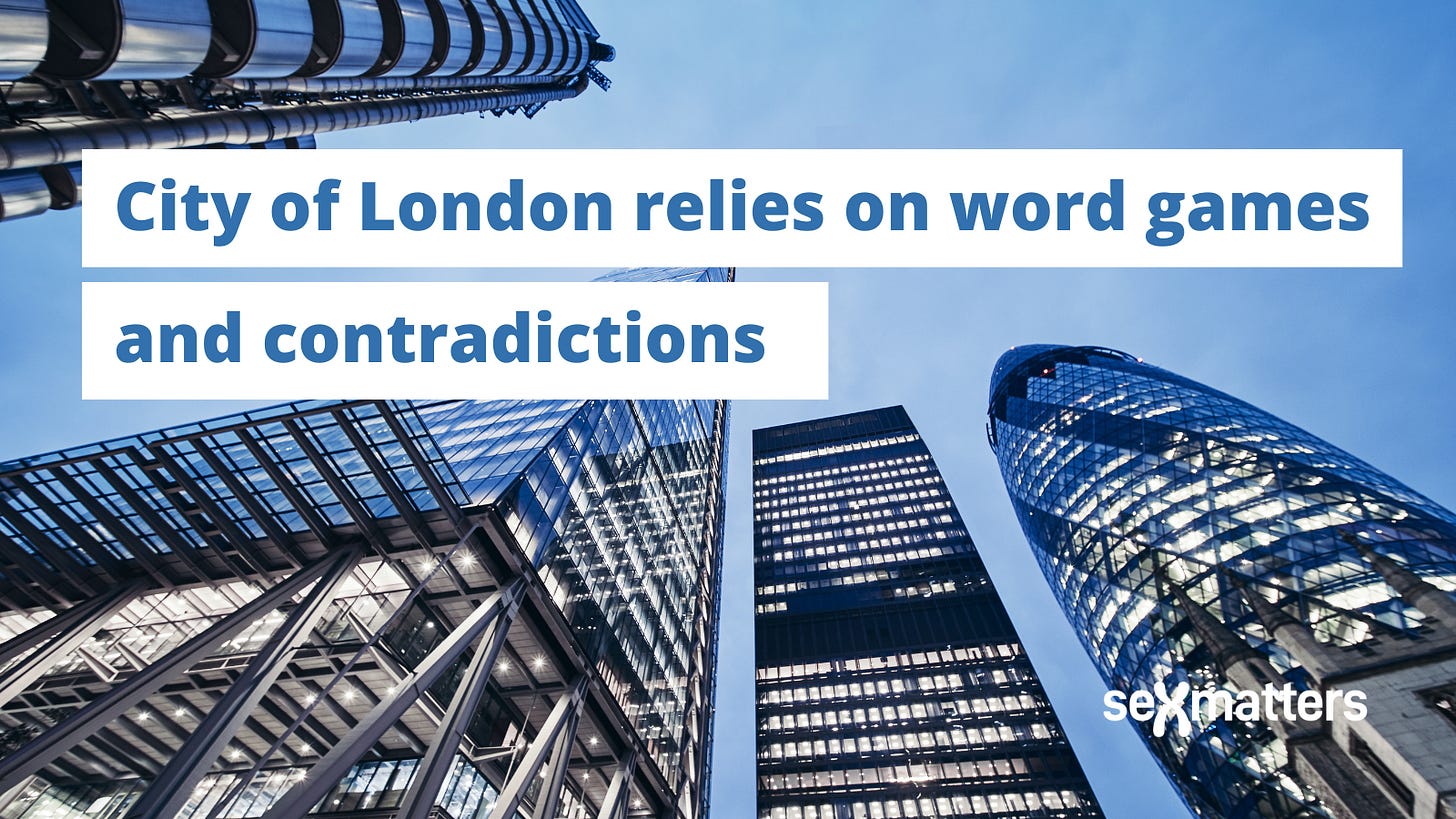 At the one-day hearing, the City of London said that men are excluded from the women’s pond on the basis of their gender identity not their sex, and the same for women excluded from the men’s pond – which it then claimed did not constitute sex discrimination. We explain the contradictions, and how the corporation has misunderstood the law.
