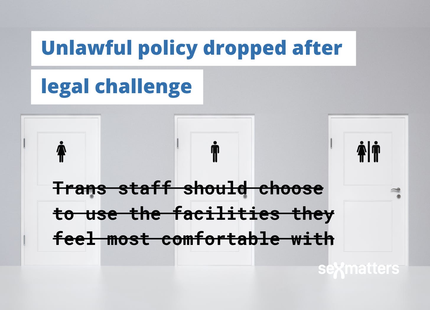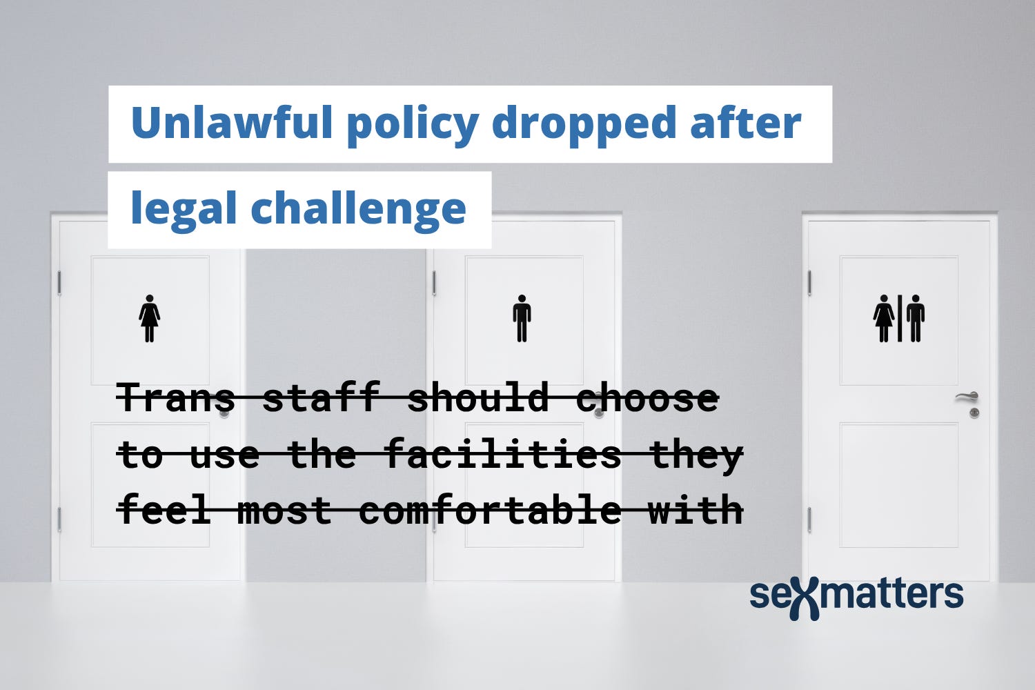 Now, finally, faced with legal action, the government has changed its position and removed the instruction to allow trans-identifying staff to use opposite-sex facilities, so we have dropped this legal challenge.