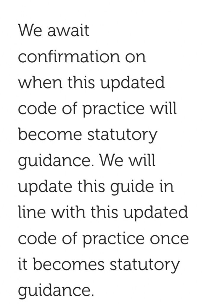 In December, the head of the civil service told us that the Cabinet Office will not withdraw its model policy for employment… until the EHRC’s code of practice for service providers is finalised.